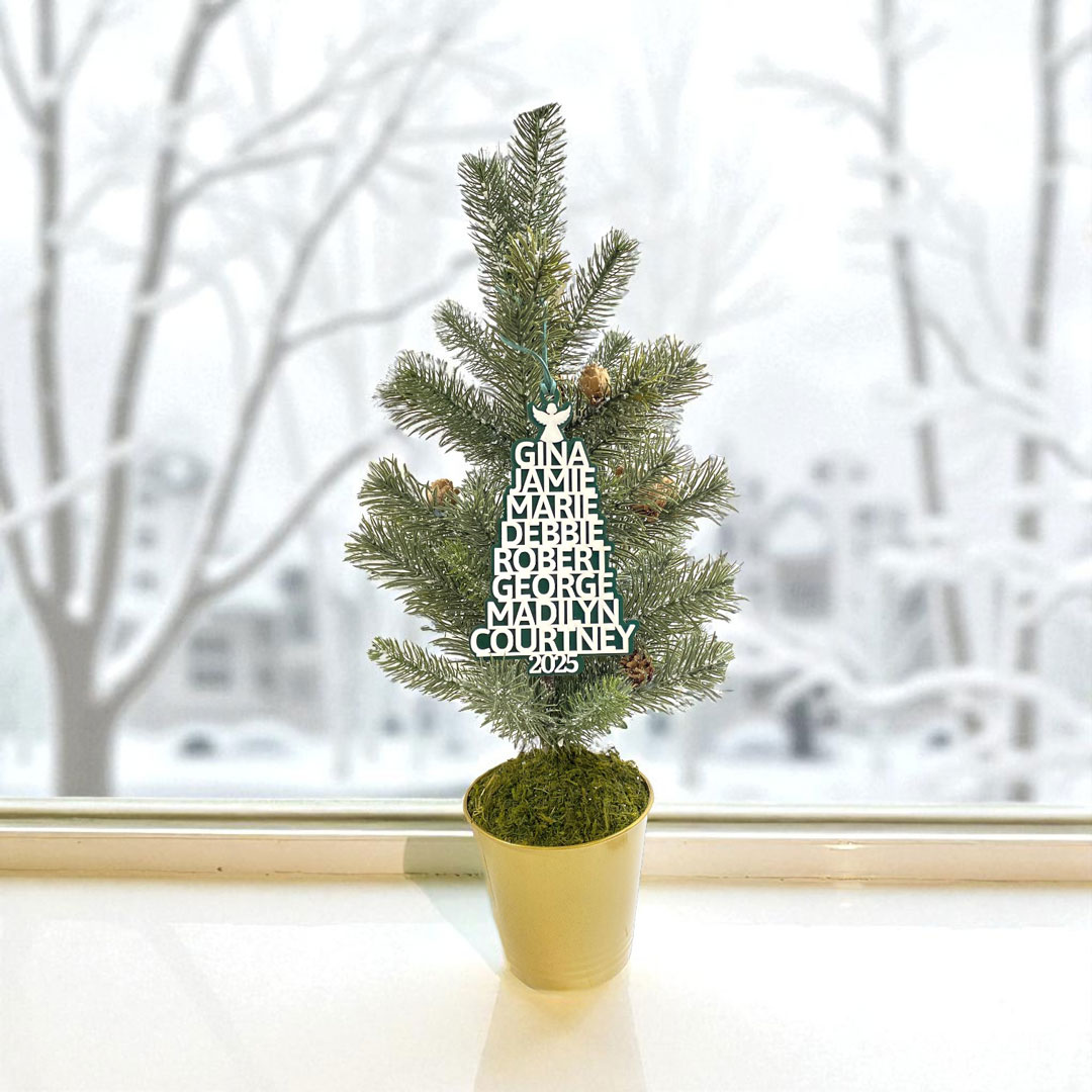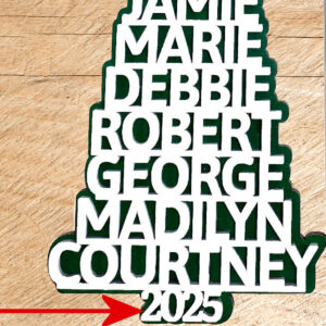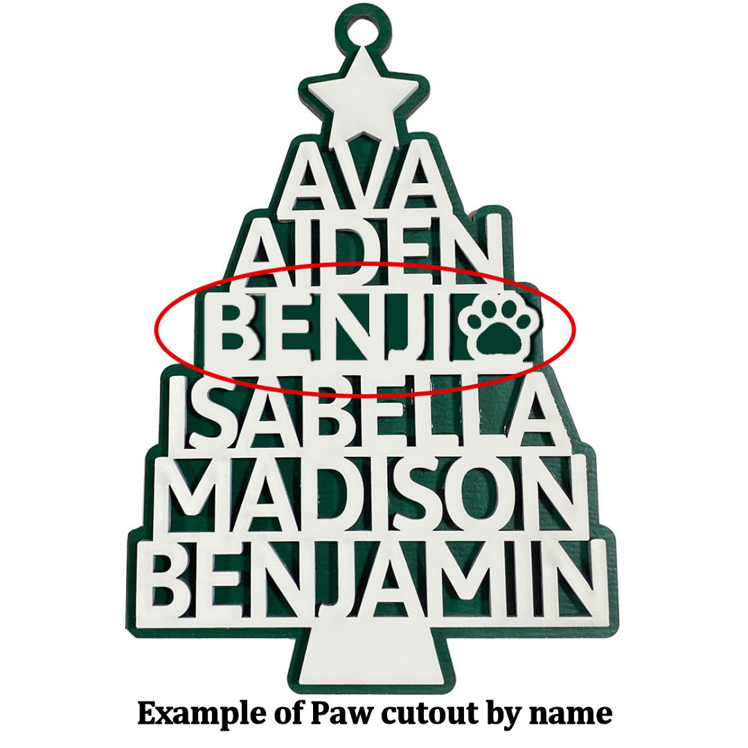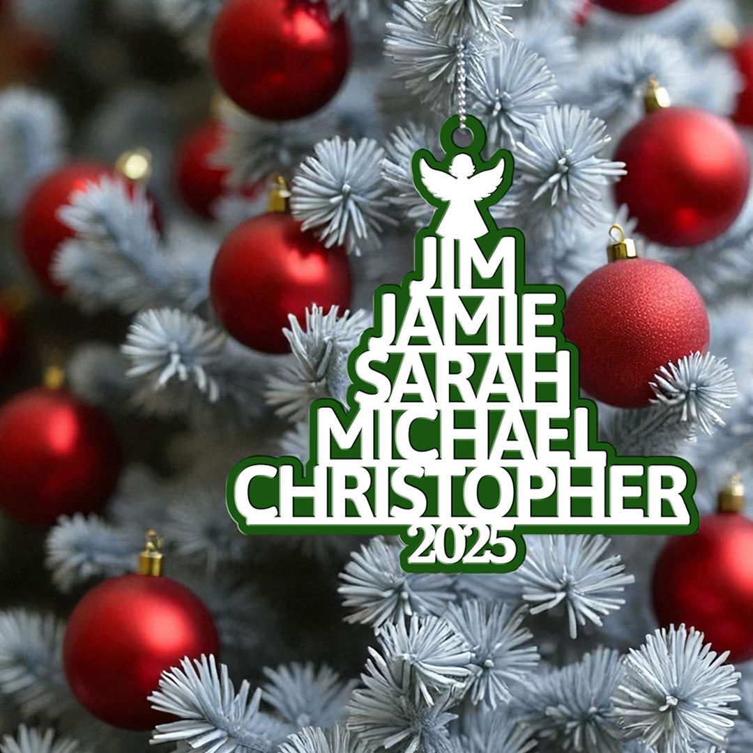 This ornament features a delightful tree-shaped design made from MDF and wood. It is precisely laser cut to ensure both accuracy and durability. This type of ornament makes an ideal gift, particularly for families or community groups. You can personalize it with your family names (including pets!) to turn it into a treasured keepsake for many years. Share happiness and warmth this season with this charming ornament. You can add up to 10 names. The names will be arranged from shortest to longest, top to bottom, and designed for the best appearance by our designer. The size will vary depending on the number of names.